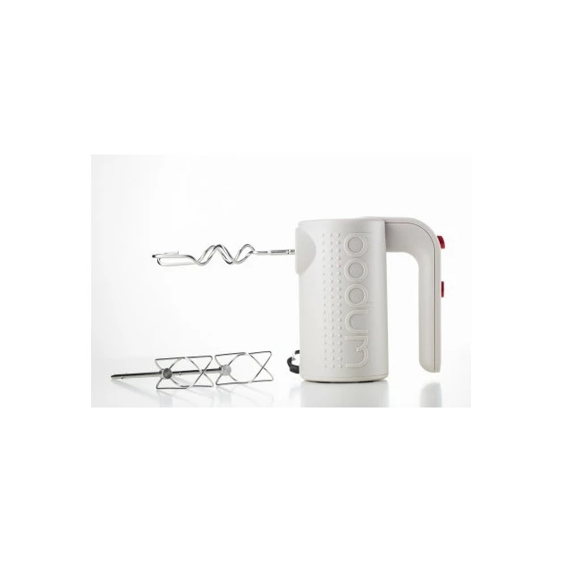 Le design danois est présent jusque dans vos tiroirs de cuisine avec le Fouet Electrique Bistro Bodum. D’une élégante couleur crème, il arbore des petits points en relief, tandis que ses boutons sont en rouge.