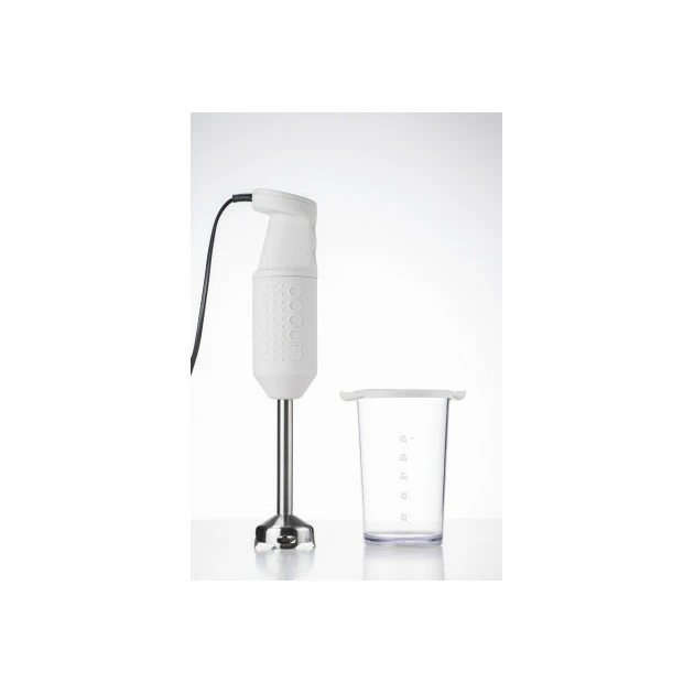 Transformez vos légumes en soupe à même la casserole ou montez une chantilly au dernier moment grâce au Mixeur Plongeant Bodum. Doté de 3 lames interchangeables, il vous permettra de mixer, fouetter ou encore mélanger en un seul geste et en quelques secondes. Le mixeur plongeant Bodum dispose d’un revêtement antidérapant, pour un toucher agréable et une prise en main en toute sécurité, notamment sil elles sont mouillées. Il est fourni avec un verre gradué de 50 cl. Vous pourrez directement mixer votre préparation et la conserver grâce à son couvercle hermétique.