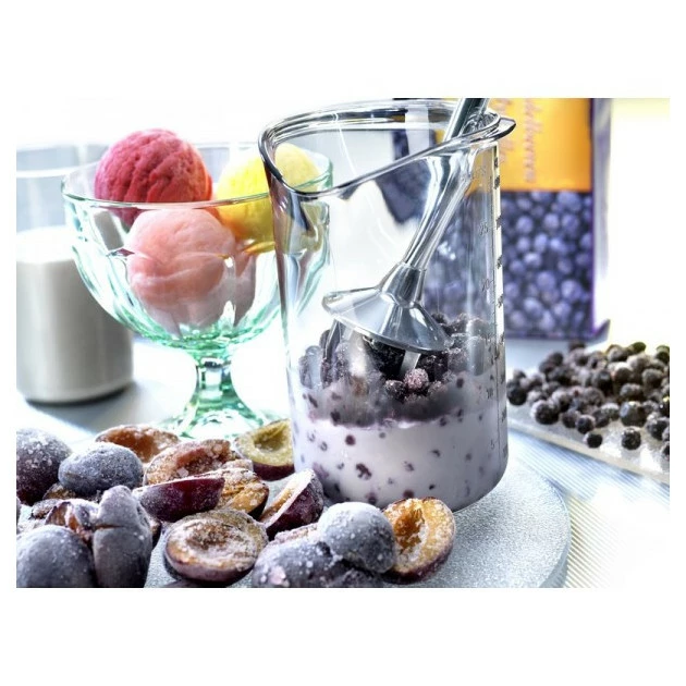 - Contient : 1 couteau étoile + 1 disque fouet + 1 disque mélangeur + 1 gobelet 600 ml + support mural