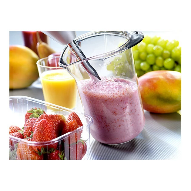 Silencieux, peu encombrant, polyvalent : le Mixeur Plongeant Bamix M160 Deluxe séduira les professionnels et les particuliers. Livré avec un support, il trouvera facilement sa place sur le plan de travail, pour une utilisation immédiate et un faible encombrement. Le support du Mixeur Plongeant M160 Deluxe Bamix a été pensé afin que vous puissiez y ranger les accessoires. Ces derniers se composent d’un disque fouet, un disque mélangeur, un couteau fouet, un gobelet et un moulin.